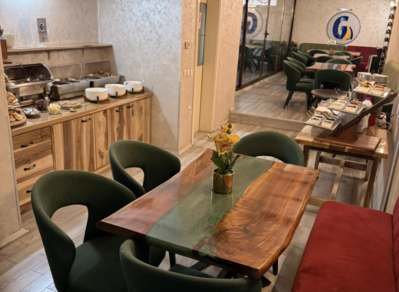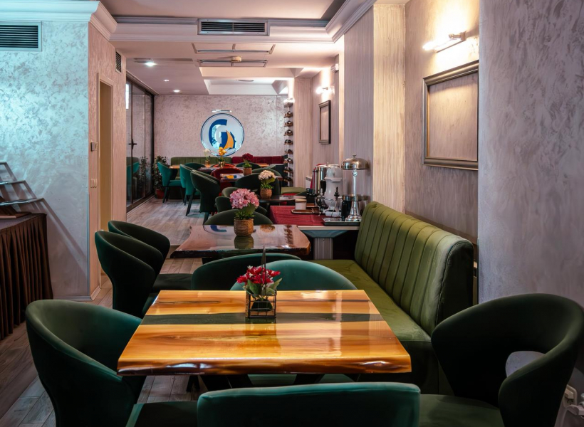 Кафичот е со вкупна квадратура 130 м2 и е во склоп на хотел.