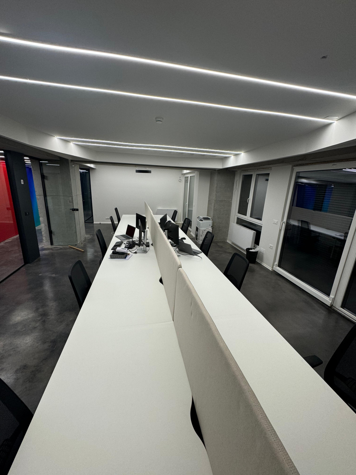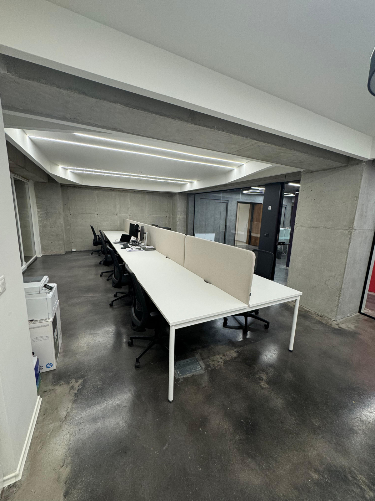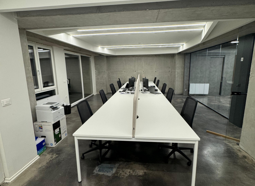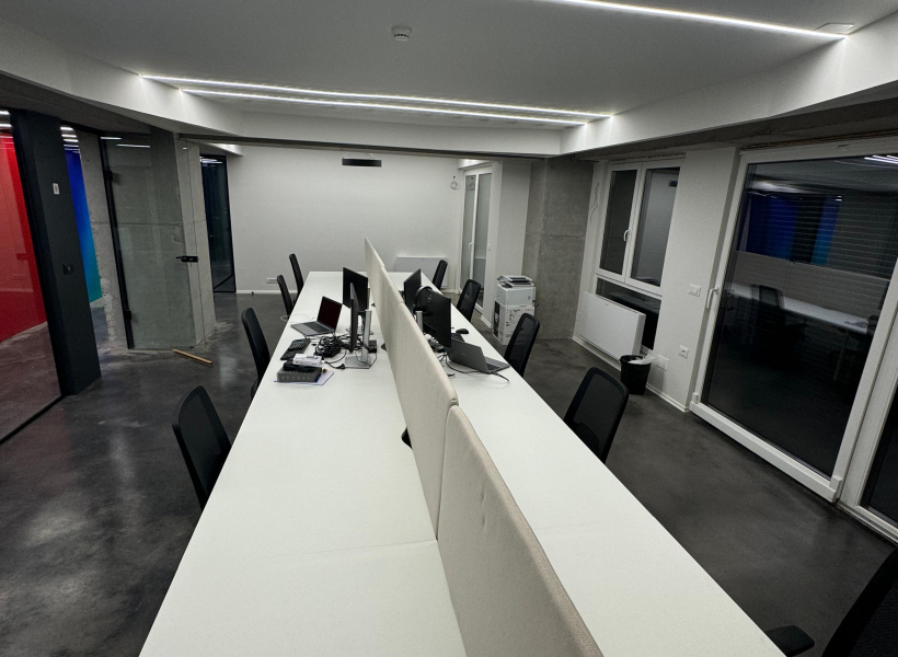 Просторот располага 34 работни позииции, односно, open space со 20 работни позиции, 4 засебни канцеларии, конференциска сала, кујна , game room, и тоалети.