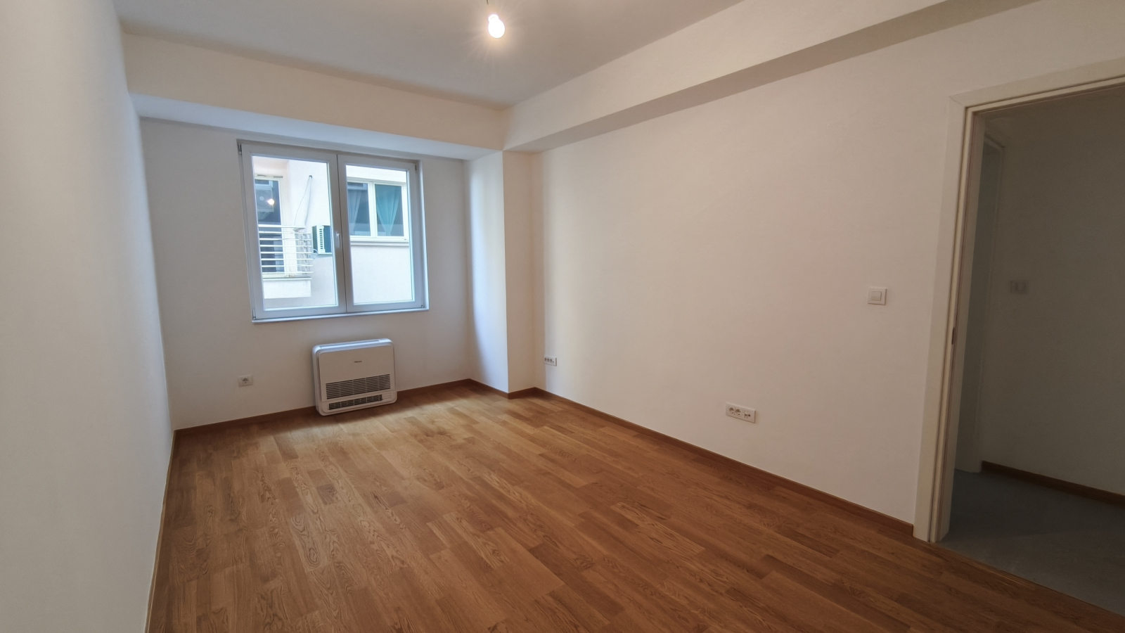 Heating and cooling are regulated through a multi-split system, consisting of two outdoor units and multiple indoor low-positioned fan coil units.