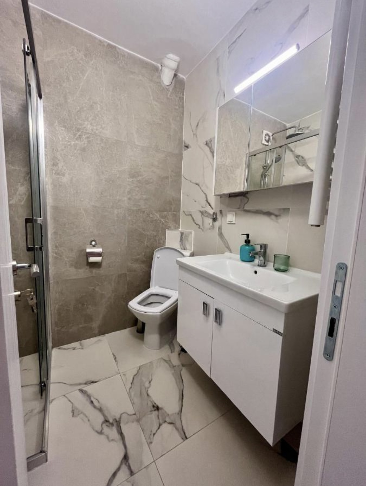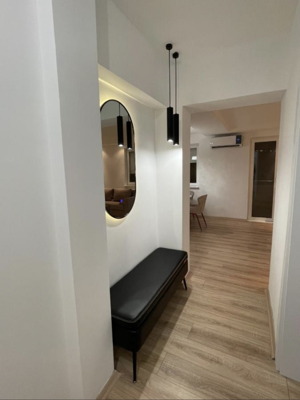 The apartment is fully renovated and comes with furniture and appliances, ready for immediate move-in or rental.