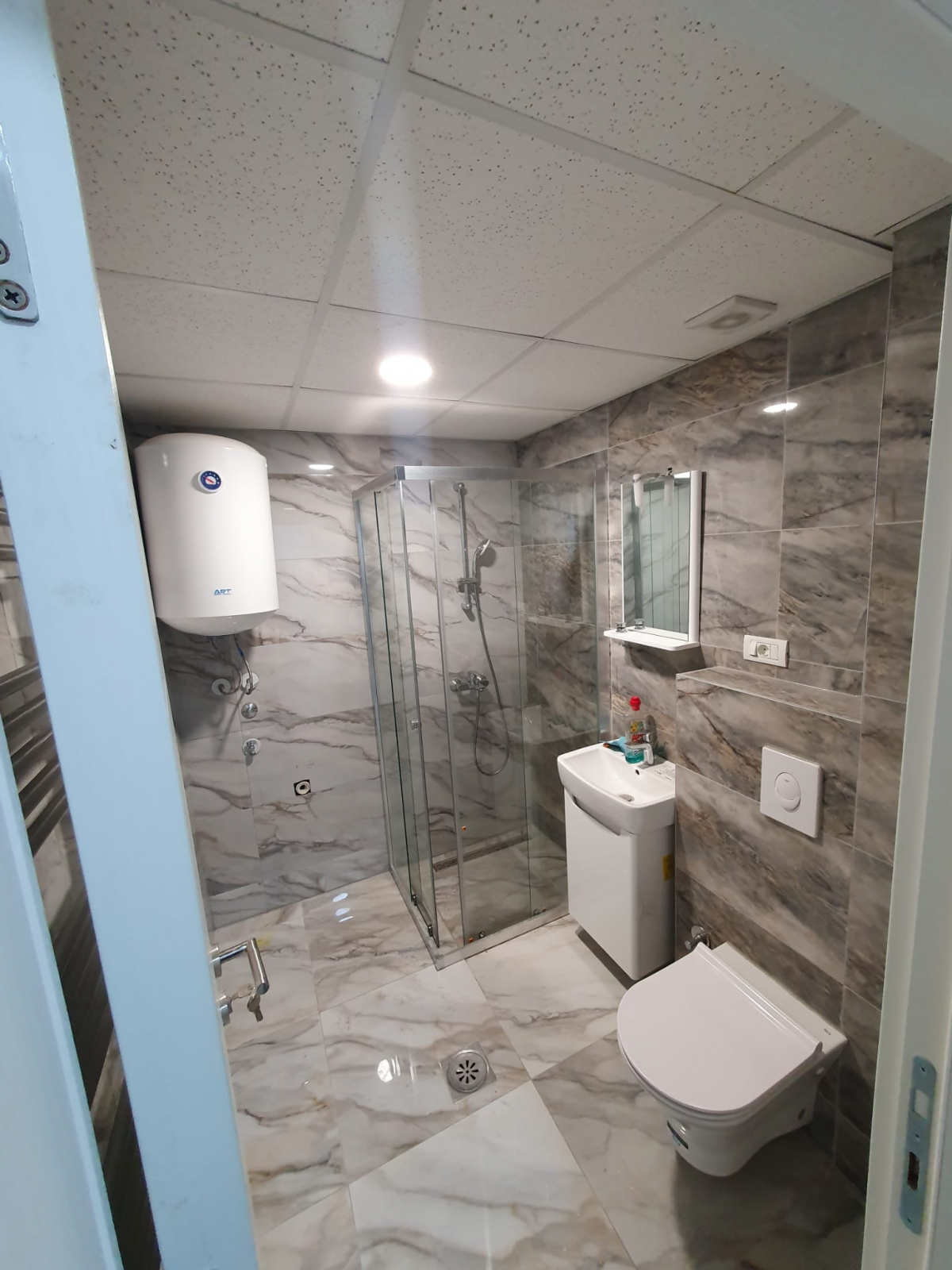 Heating is provided through district (central) heating, with installations for air-conditioning units.