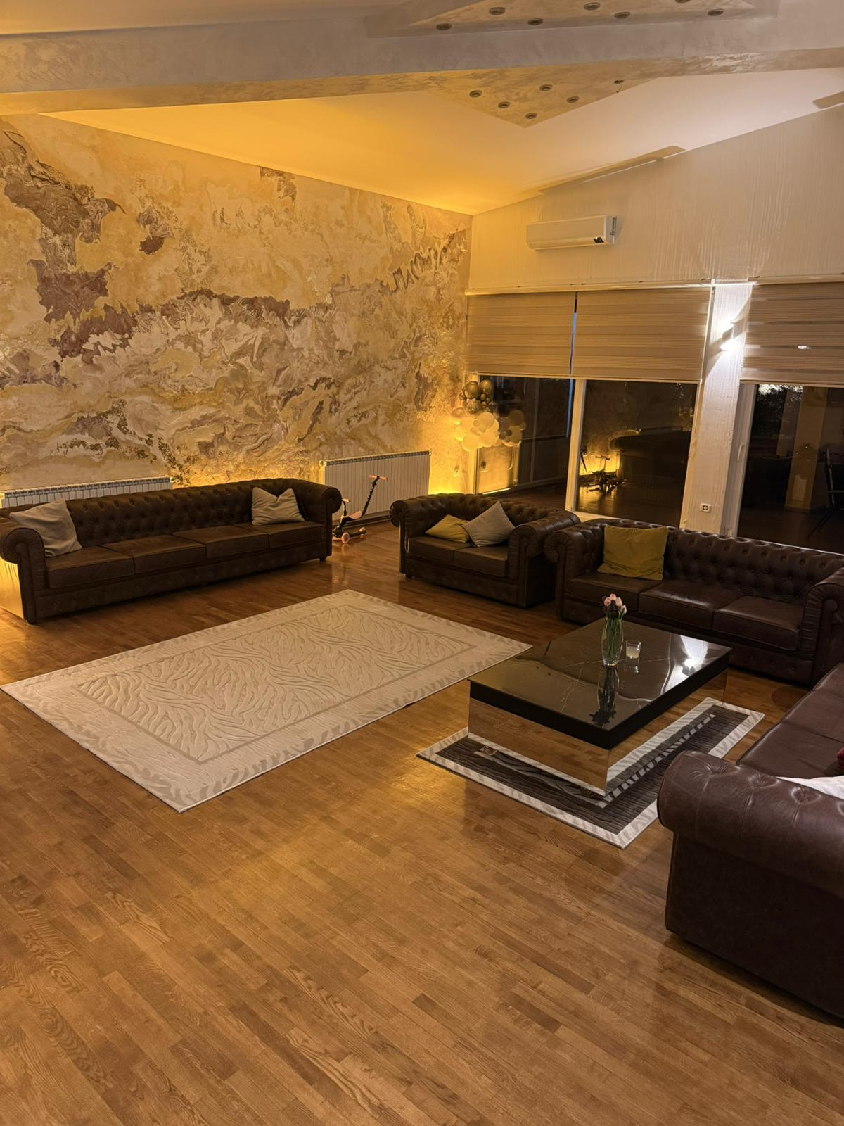 The house has four bedrooms, spacious living room with a size of 159m2, fully equipped kitchen and dining room, three bathrooms and storage room.