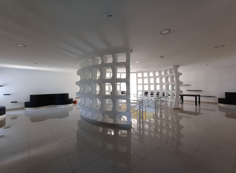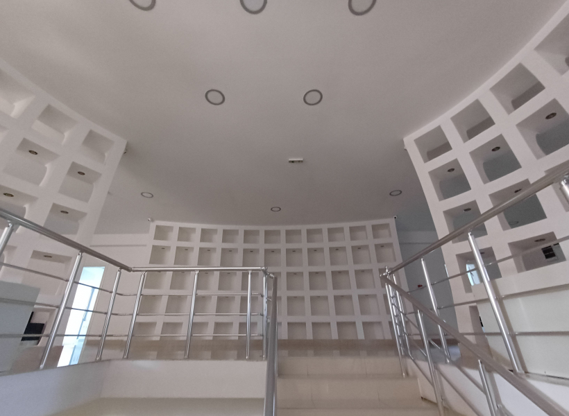 - Function: Exhibition hall, with Knauf (plasterboard) and glass, and granite tiles throughout the space.
