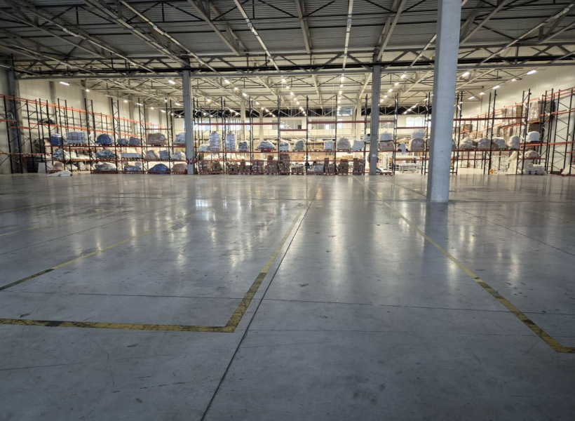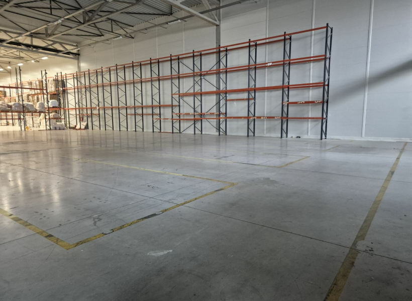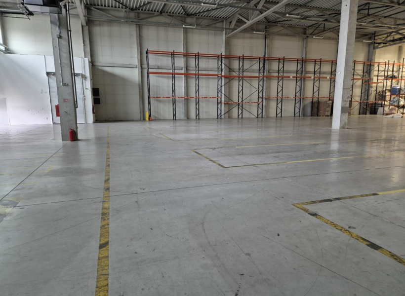 The property offers a total area of 2,500 sqm, with an open-plan layout that allows flexible organization according to the tenant’s needs. The warehouse features a high clear height, enabling efficient pallet and racking storage.
