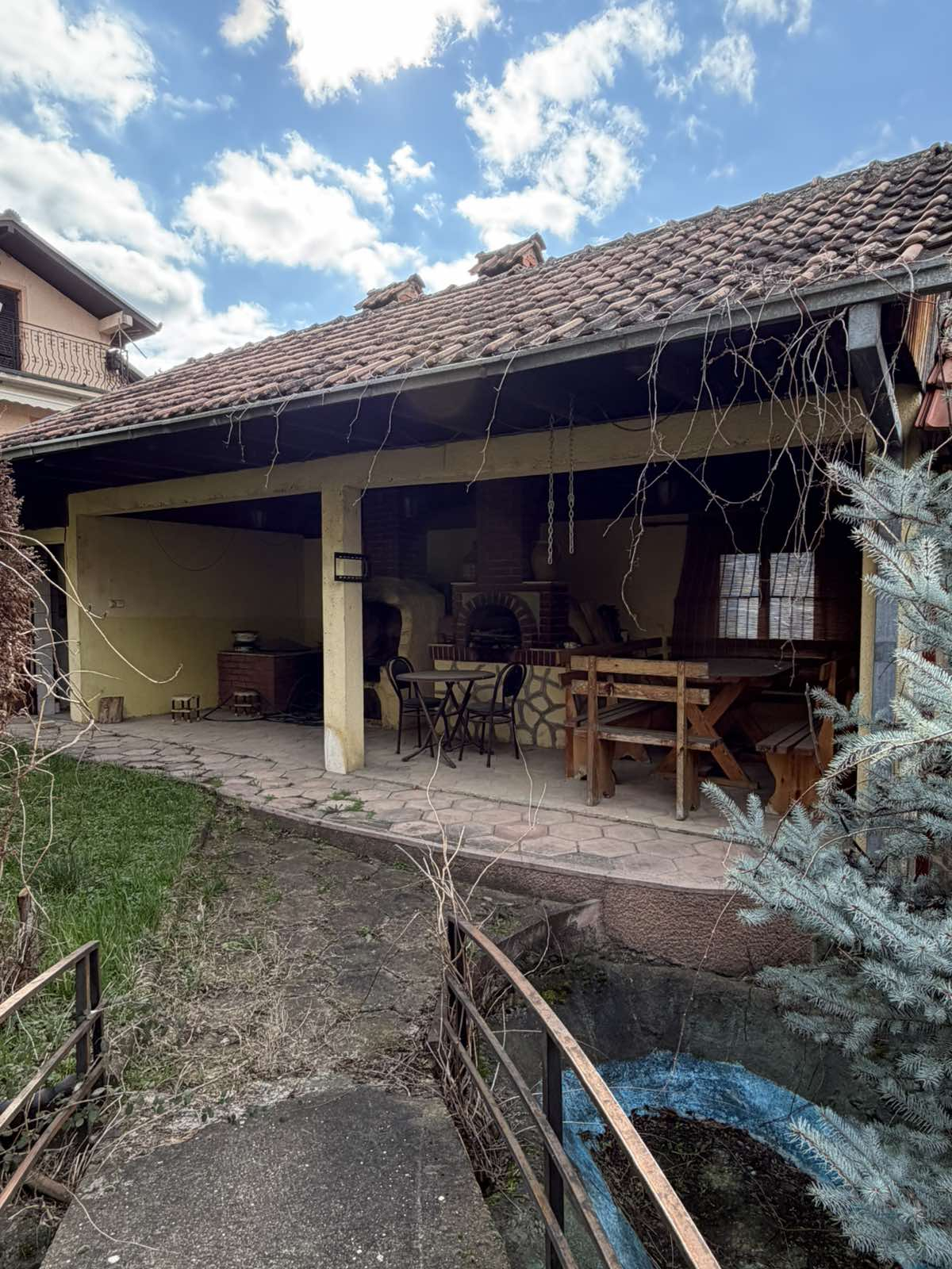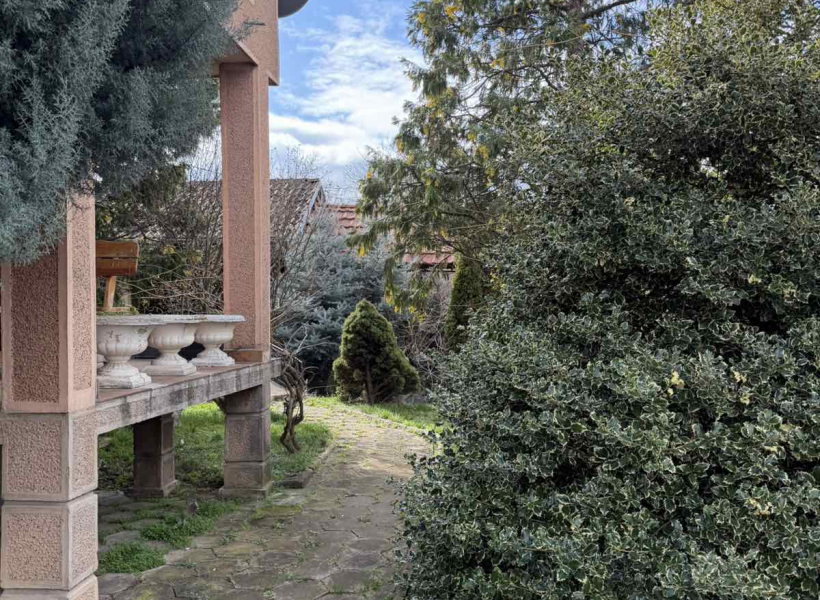 Куќа е лоцирана во Визбегово на со вкупна корисна површина од 276 м², функционално распоредена на 3 нивоа. Објектот располага со 6 спални соби, 3 дневни престои, 3 кујни и 3 тоалети, што овозможува удобен простор за поголемо семејство или повеќенаменско користење. Куќата се наоѓа на парцела со вкупна површина од 504 м², од кои 389 м² се дворно место, а 115 м² земјиште под објект. Дворот е уреден и содржи летниковец со скара и фурна, декоративна фонтана и ограден простор со кована ограда. Објектот е изведен со пикована фасада и располага со систем за парно греење на струја и нафта, како и 3 клима уреди поставени на секој кат.