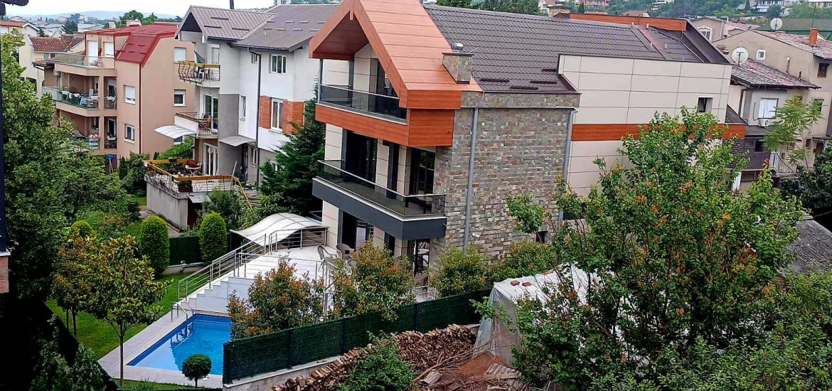 Во дворот има голем базен.