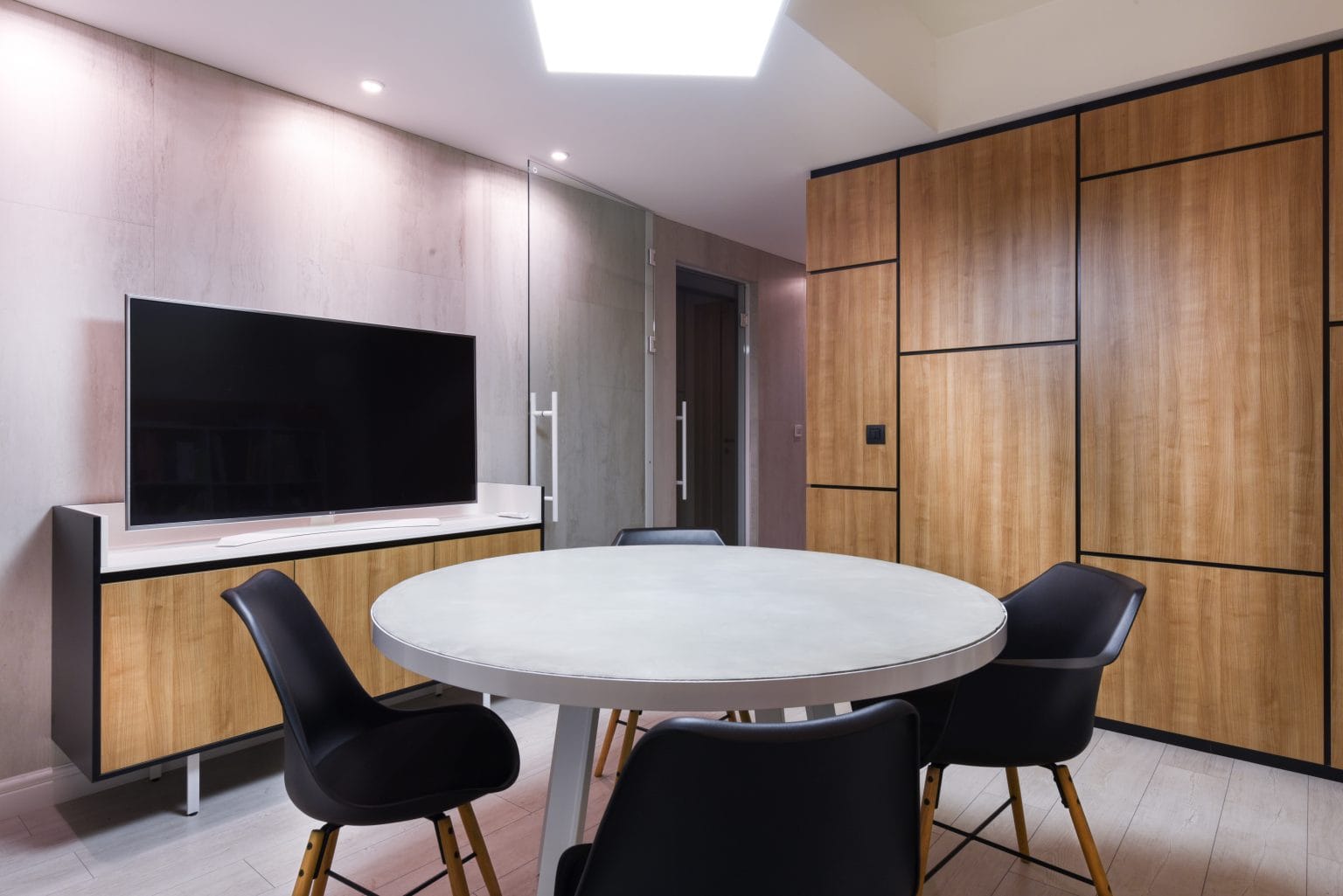 Опремена кујнаДеловниот простор е лоциран на високо приземје и располага со отворен простор со капацитет за 8-12 работни позиции, една помала канцеларија за две работни места, конференциска сала, кујна, остава, два тоалети и тераса.
