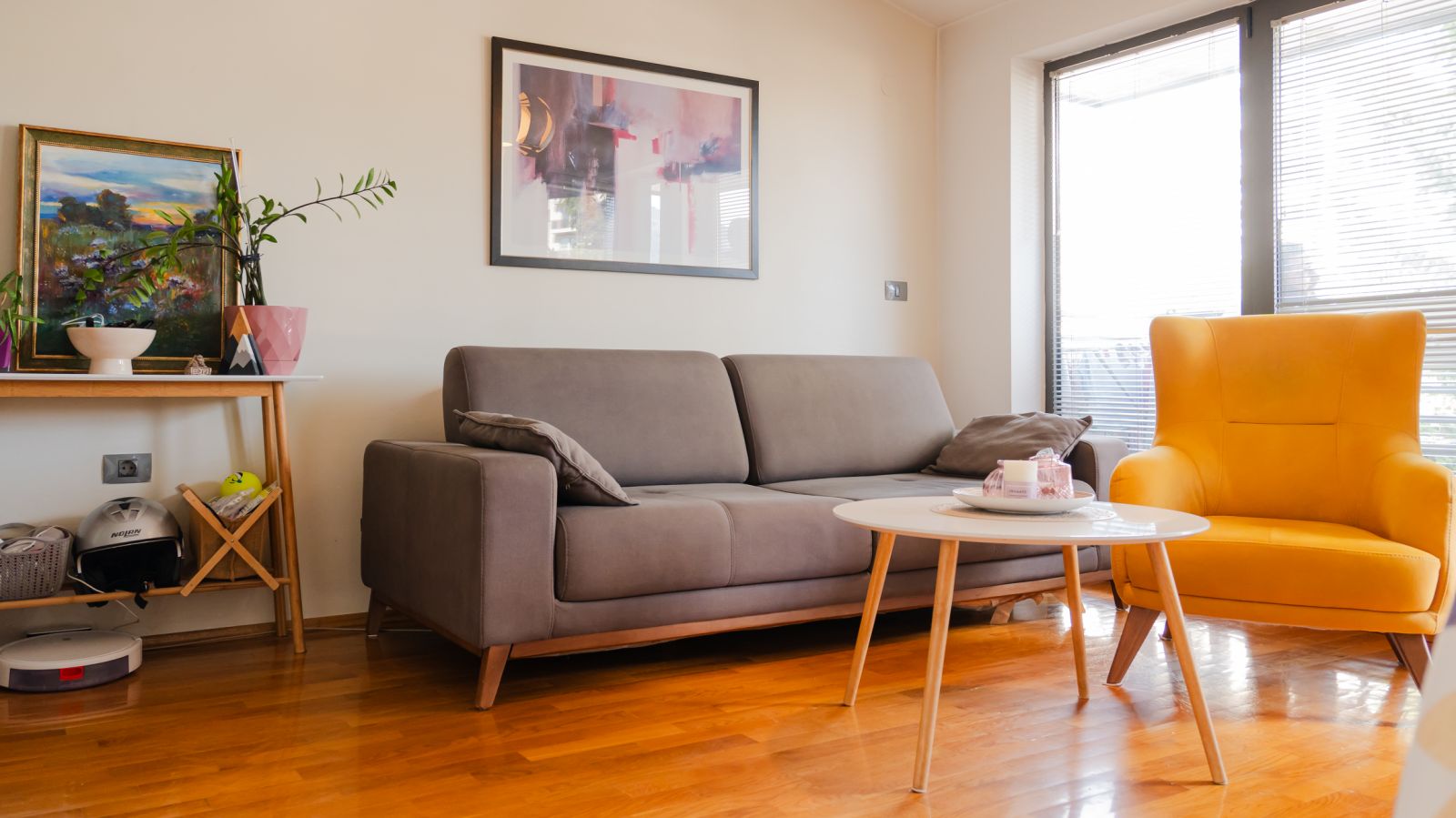 Станот е лоциран на 2ри кат и располага со вкупна површина од 64м2, односно 48м2 внатрешна површина и 18м2 тераси.