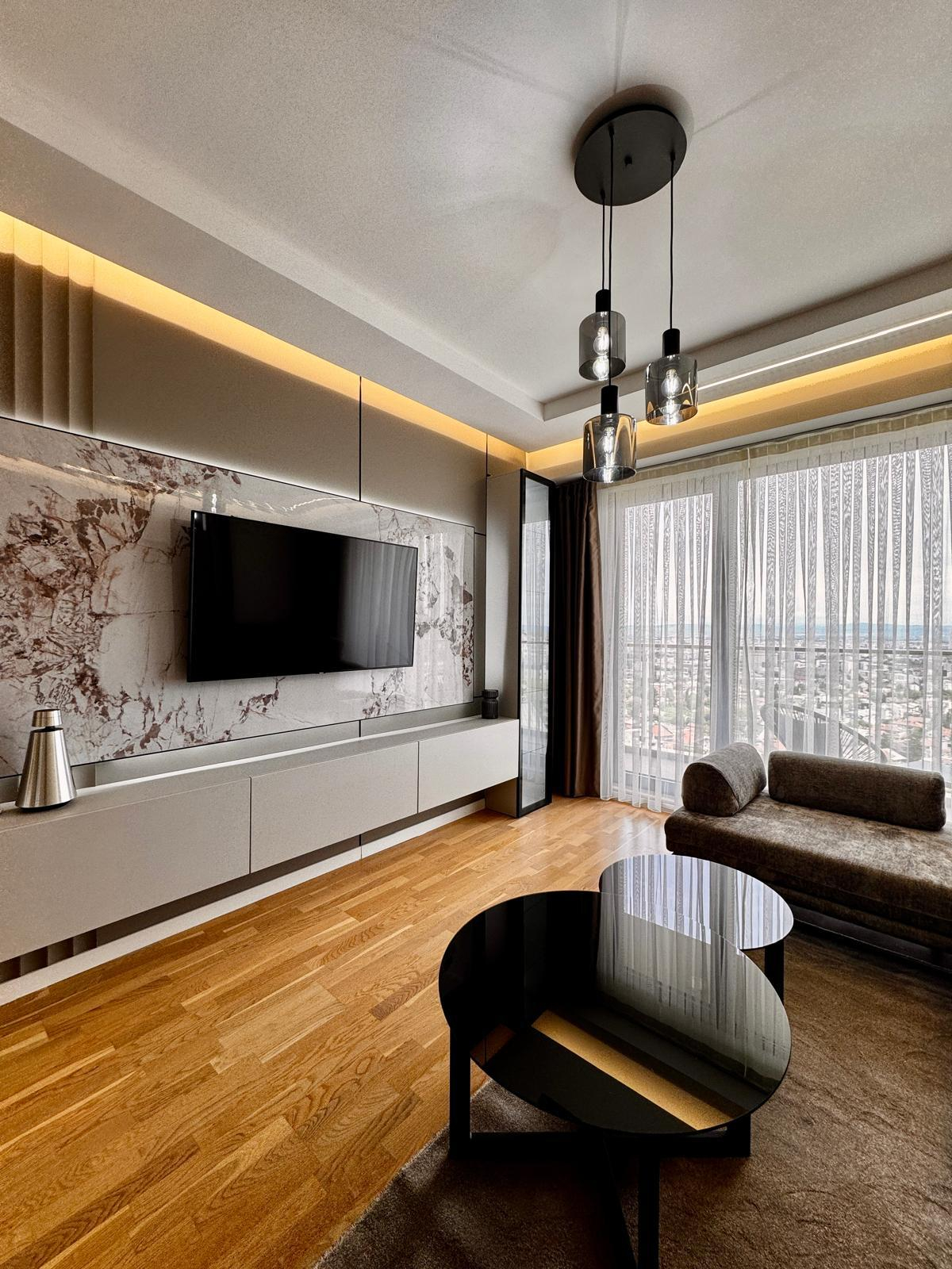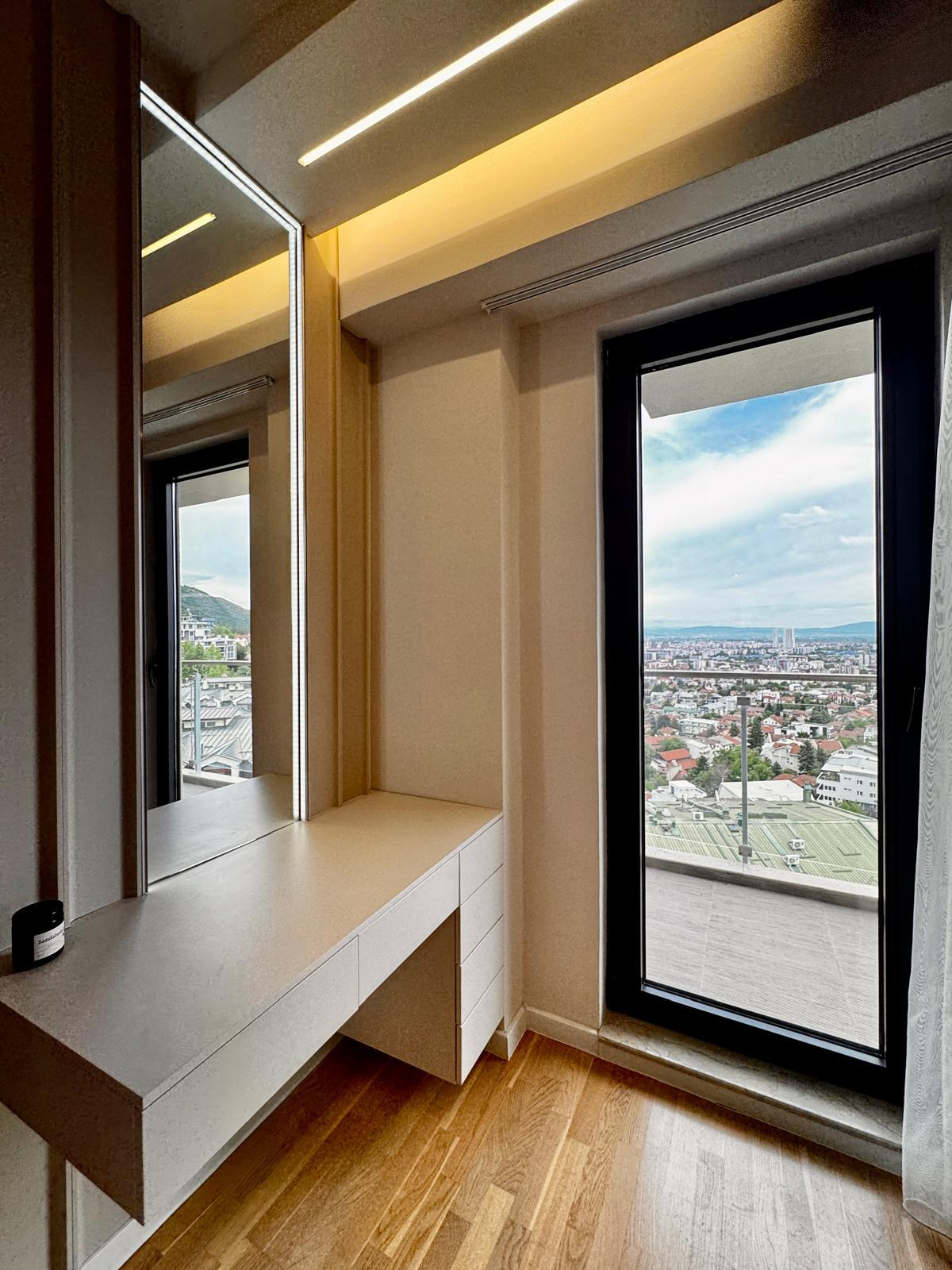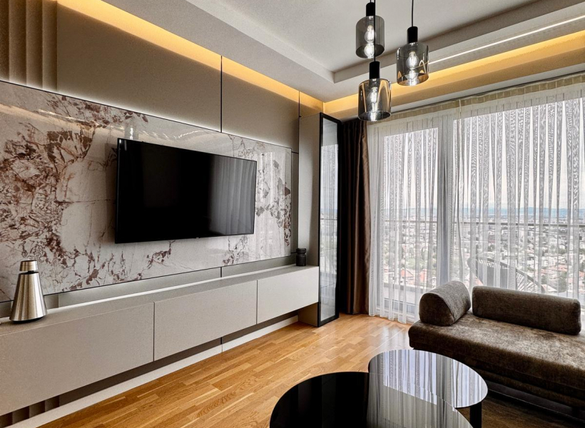 Се изнајмува нов, комплетно опремен стан во Panorama Residence, со вкупна површина од 67м2.