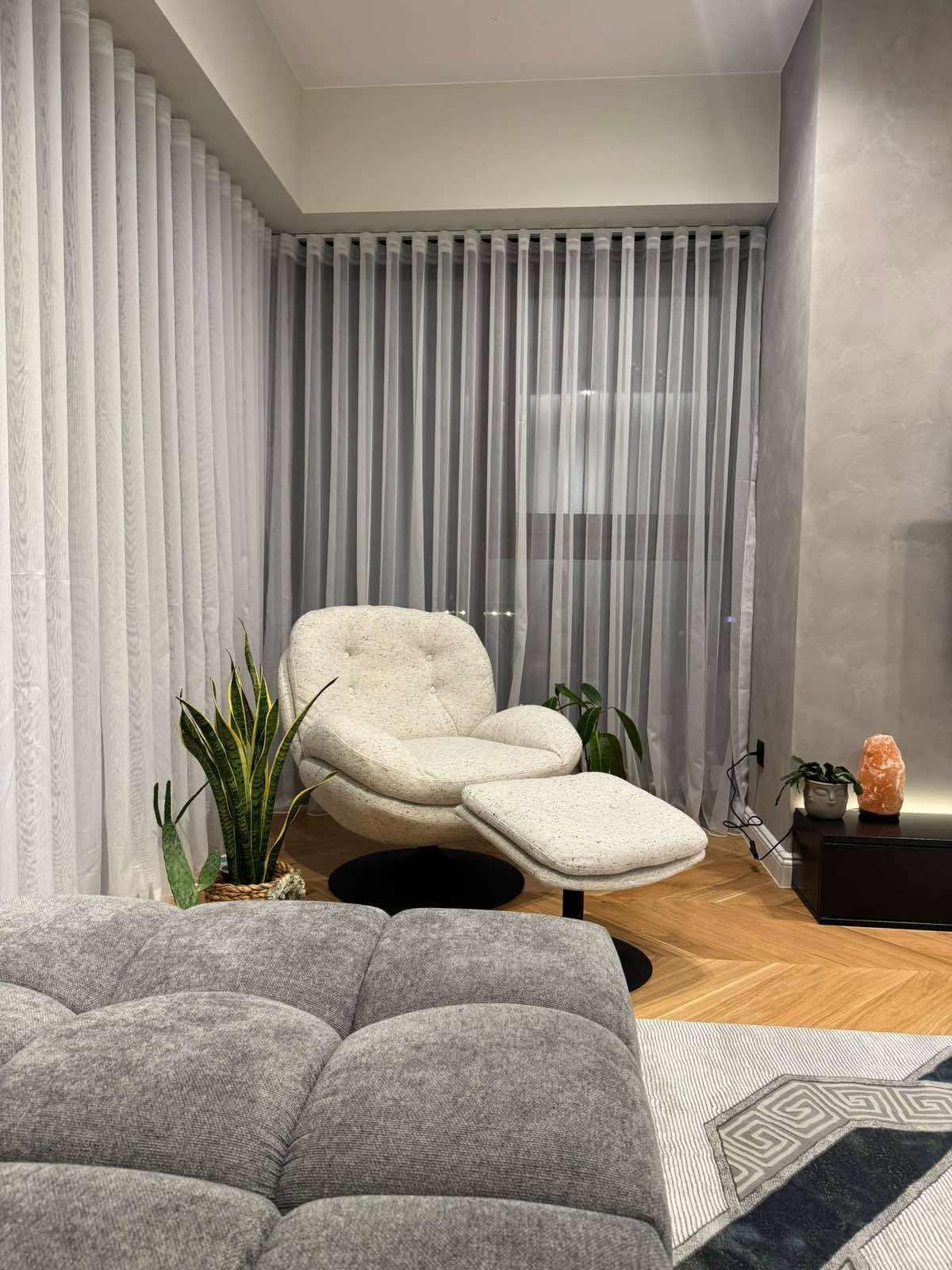 Станот се наоѓа во Кула Б на 9-ти кат и нуди одлична организација на просторот, светлина и комфор за современо живеење.