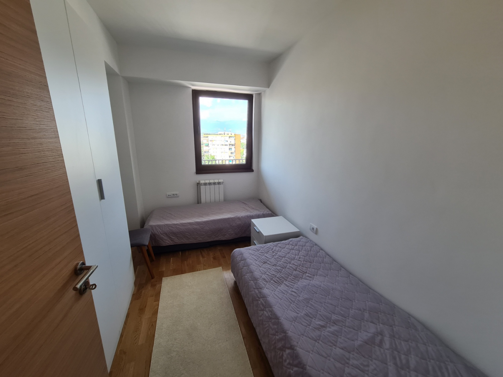 Станот е лоциран на 8-ми кат и располага со три целосно опремени соби.
