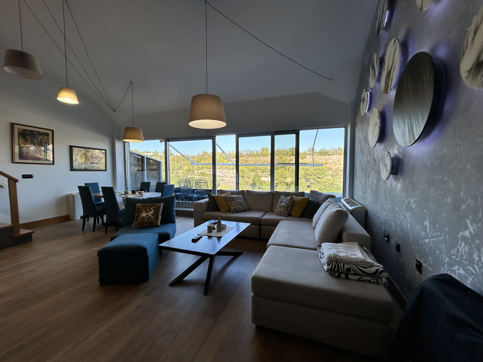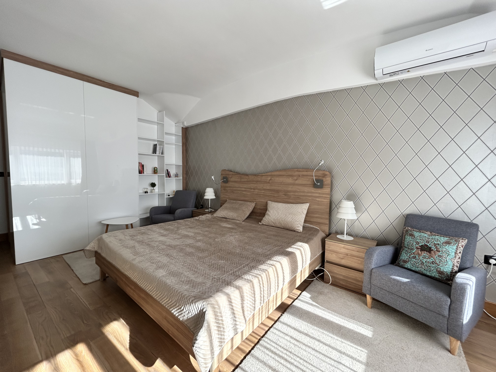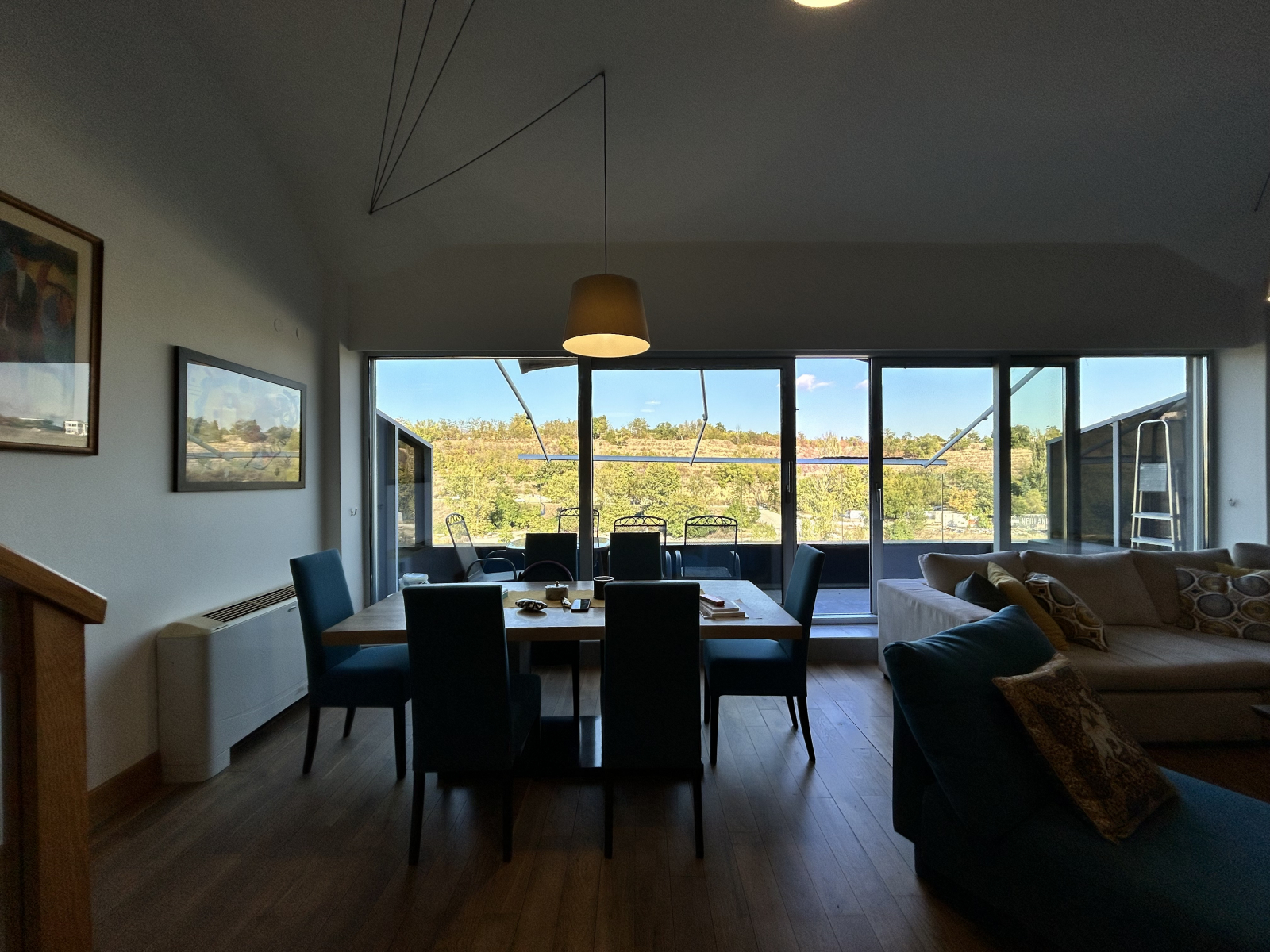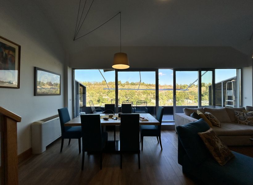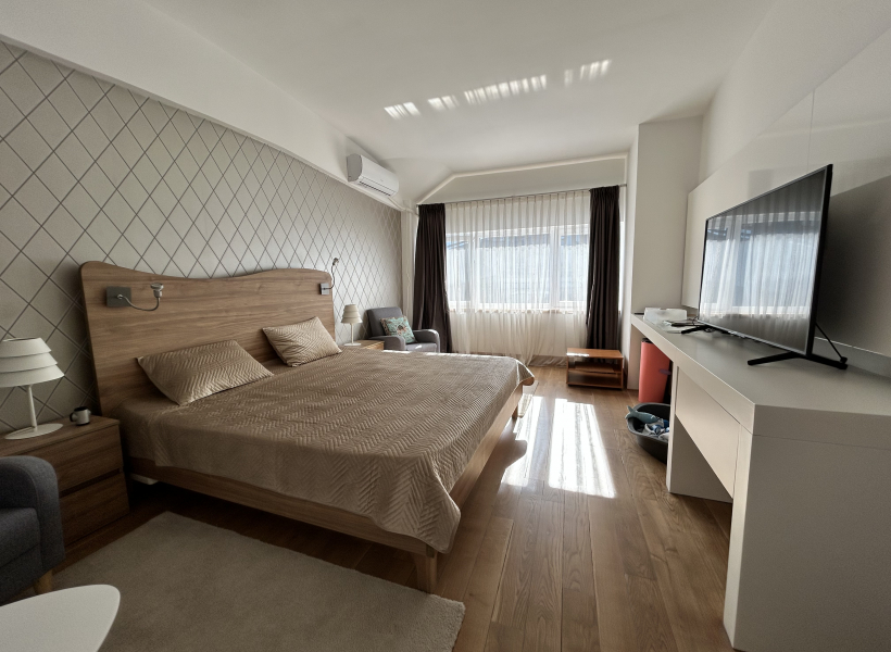 Греењето и ладењето се регулирани преку фенкојлери, а во главната спална соба дополнително има клима уред.